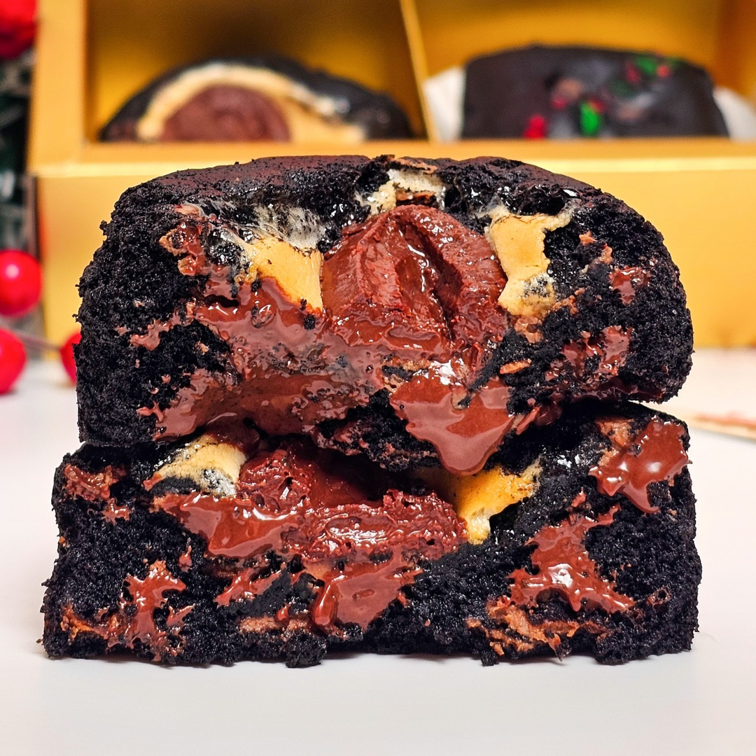 A rich twist on the campfire classic — deep dark cocoa cookie packed with gooey marshmallows and melty chocolate, bringing toasty, nostalgic s’mores bliss in every bite!