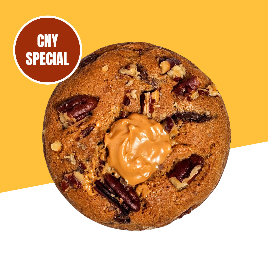 A rich, indulgent cookie filled with creamy crunchy peanut butter, toasted pecan nuts, caramel chocolate, and dark chocolate β a generous blend of all the good things, made for sharing good fortune.